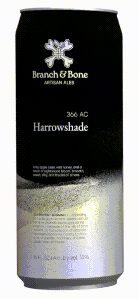 Harrowshade exists as a cozy oasis in the middle of a glacial desert; this apple cider blended with honey, and a touch of nightshade comes together to form cyser. A smooth, sweet, and silky apple honey wine that is good for any seasonal occasion.