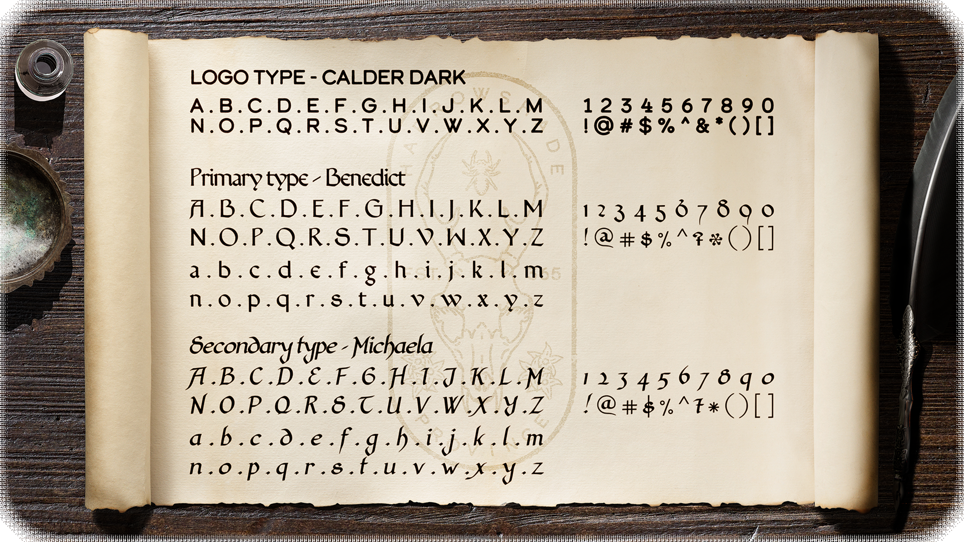 Last names hold power, in the medieval period and now, so an effort was made to explore the creation of an icon that could incorporate the last names of the three founders. Harrowfell, Lútalica, and Nightshade.
