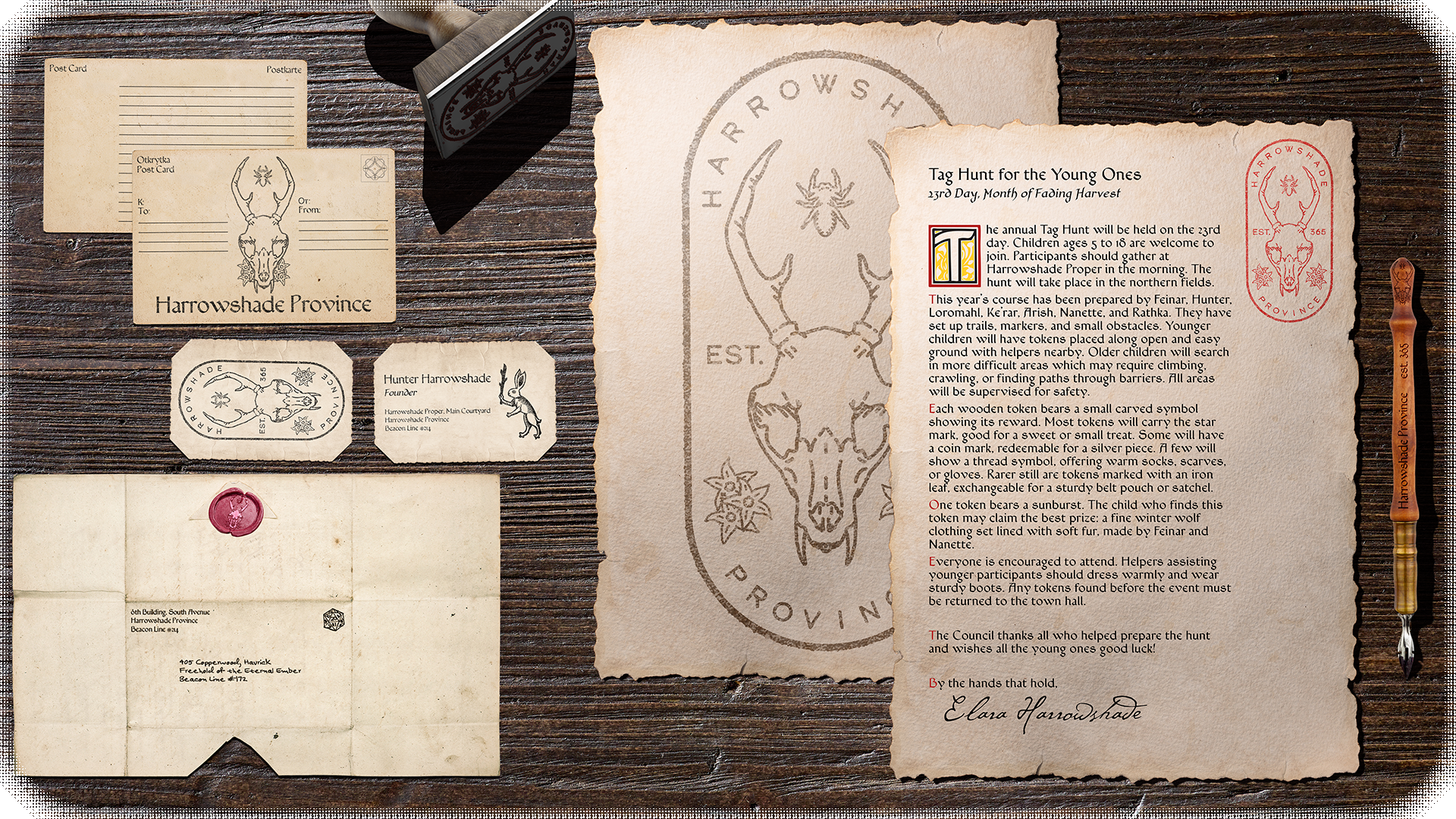 Harrowshade exists in a more medieval type of setting but the goal was the explore the applications of some period accurate stationary and then a more modern approach.