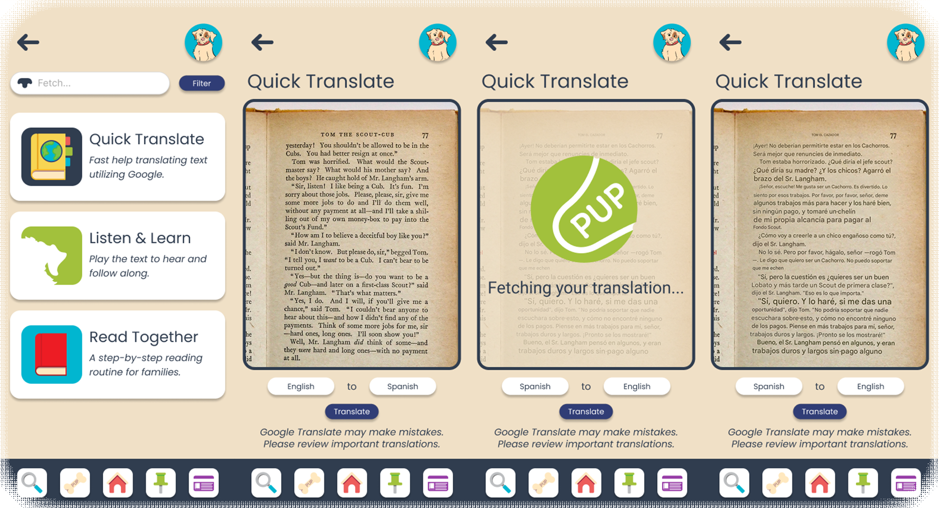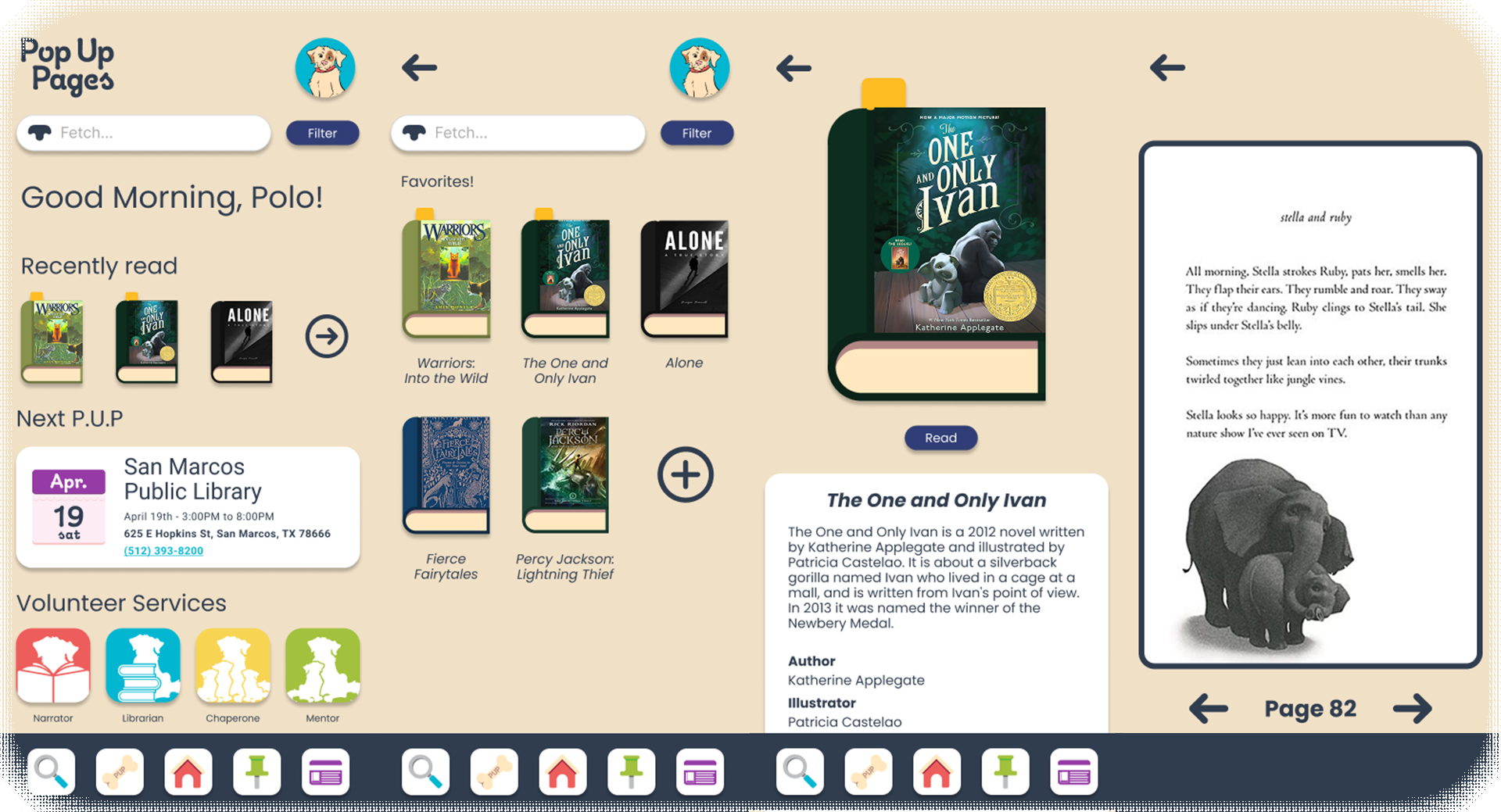 Children at times miss out on literacy opportunities due to barriers like transportation, limited library hours, and lack of digital access, while families with time, mobility, or language challenges, struggle to navigate existing systems. To facilitate literacy support in our community we created P.U.P., a literacy pop-up event and app that provides easy access to books, education and provides encouragement for reading.